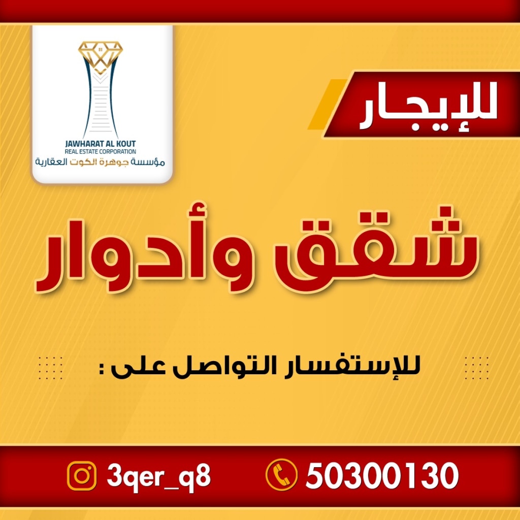 Apartments, floors, and entire houses for rent in Al-Mutlaa Al-Qasr. Jaber Al-Ahmad + Saad Al-Abdullah + Al-Naseem + Al-Oyoun + Al-Qasr + Al-Naeem We welcome you to all the owner’s offers and offers are available in all areas of Kuwait. Call on WhatsApp or by phone at the house 24 hours a day.