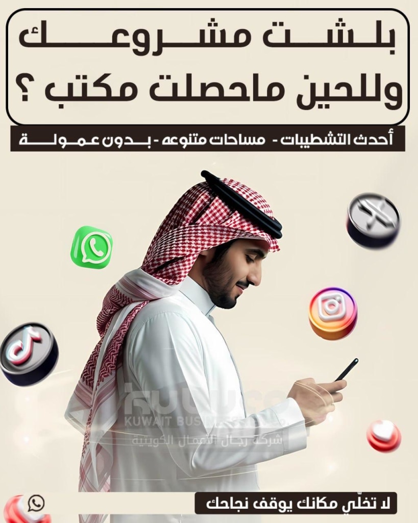 You are thinking, confused, and have a lot of damage.... We have provided you with commercial offices in the most prestigious areas of Kuwait.. in the capital, Salmiya, Hawalli, Farwaniya... and Fahaheel.🏤. Suitable for all activities.. The strongest complexes 🏩... The latest finishes....🌇 The most elegant areas......🌉 Different spaces.... Easy to reach locations.. Security around the clock...⏱️.. Don’t think or be confused, book with us without commission 😍 We are happy to call you at any time... Whatever you think about, you will find it ✌️