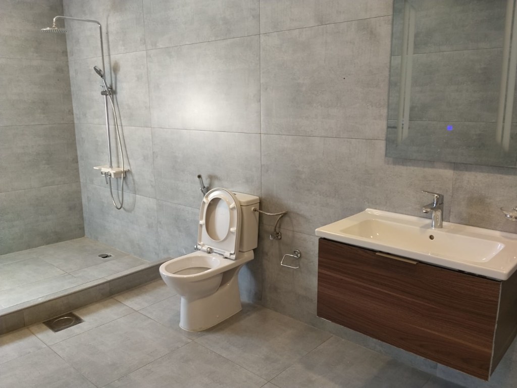 3 rooms + lounge + master bathroom + external bathroom between the two rooms + kitchen + maid’s room with bathroom.