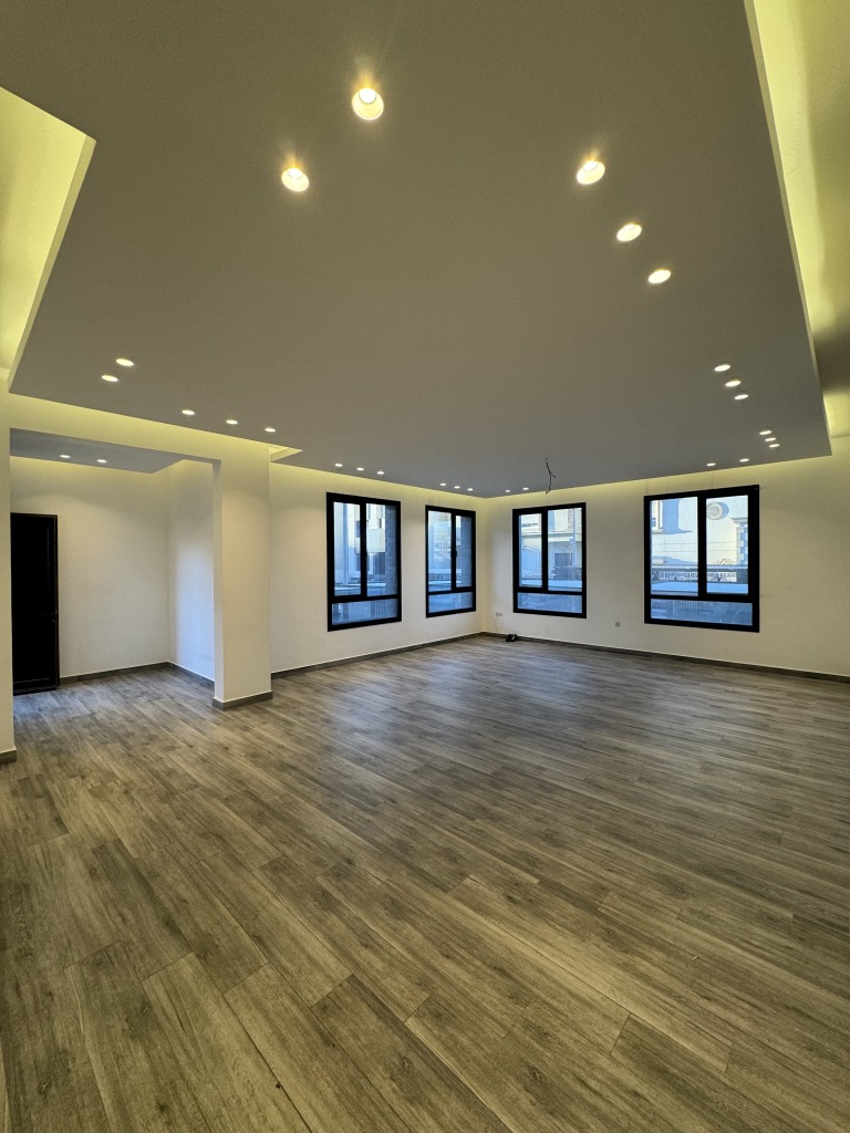 For rent, a full floor in Abu Ftaira, super deluxe, large areas, 4 bedrooms (2 master), 4 bathrooms - reception hall - living hall - maid’s room with bathroom - large kitchen - laundry room - 2 parking spaces