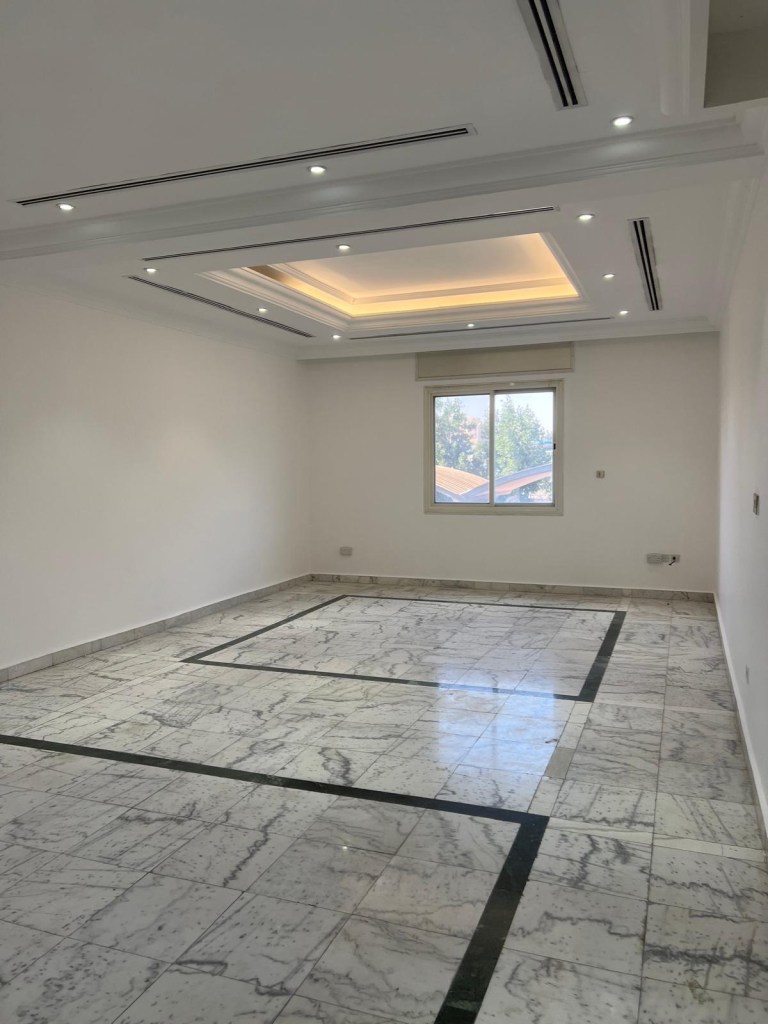 For rent, a new, uninhabited first floor in West Abdullah Al-Mubarak, consisting of 4 rooms, including two master rooms, a hall, a kitchen, maid’s rooms, 2 balconies, laundry rooms, and 6 bathrooms, high-end finishing, super deluxe, price 700