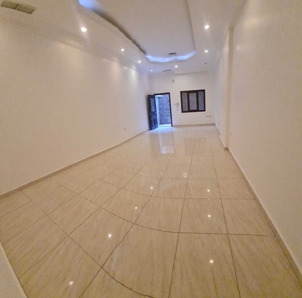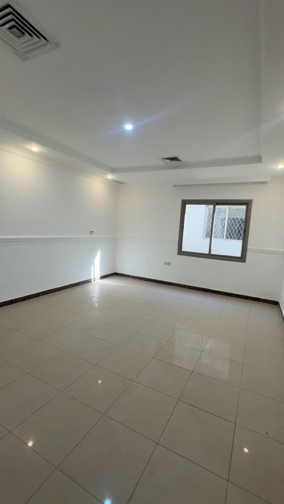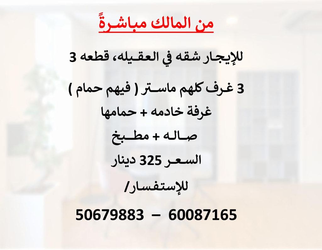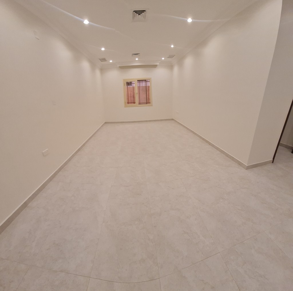 For rent in Al-Aqeela, a very clean apartment, completely renovated (ceramic floors, bathrooms, electricity, painting, sanitary, kitchen, doors), all completely new. The apartment consists of a hall and three bedrooms, one of them master. A spacious kitchen. Two bathrooms only. There is no maid’s room. The final rent is 400 dinars. To watch the video, WhatsApp the Express Office.