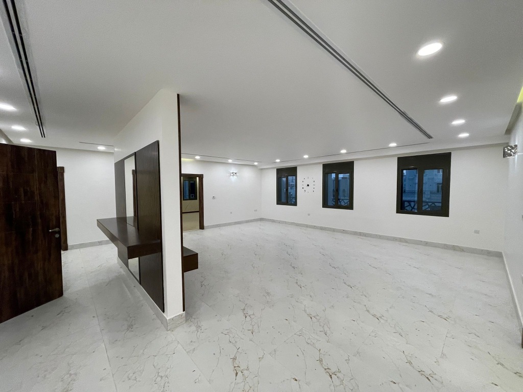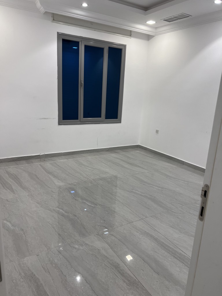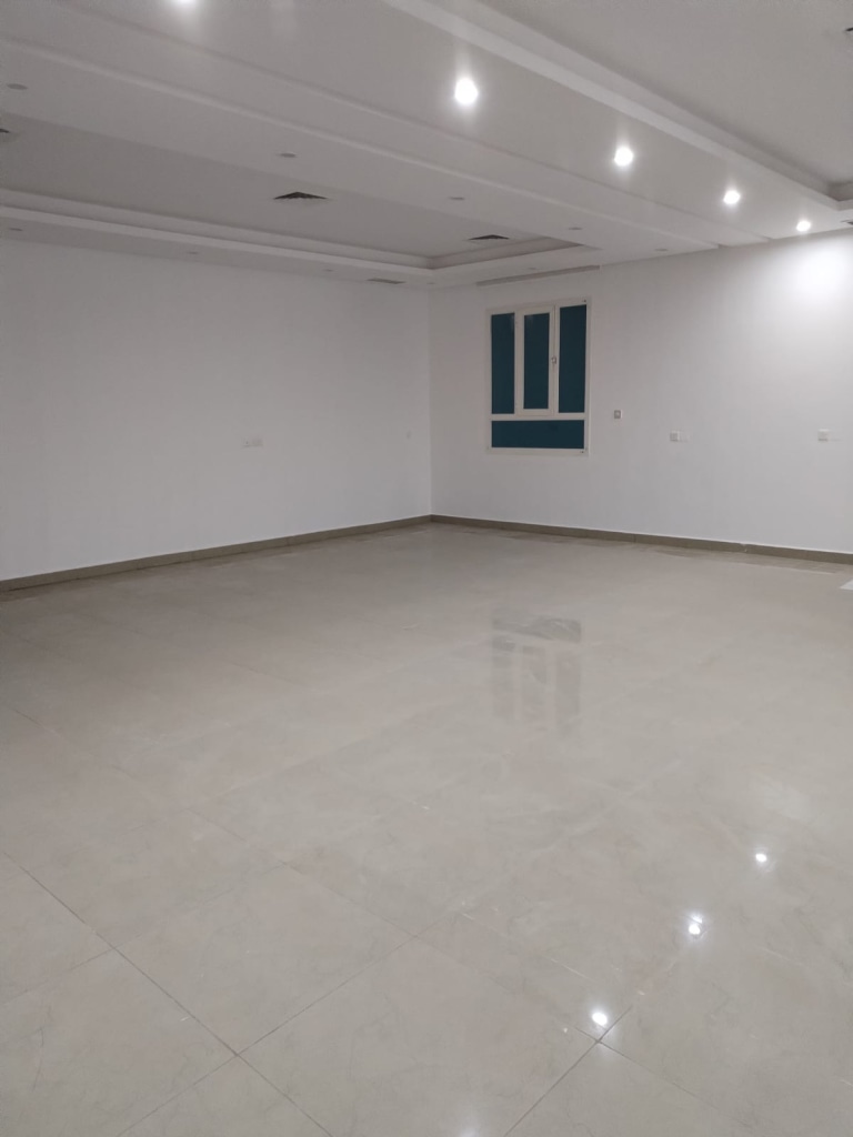 For rent, a floor in West Abdullah Al-Mubarak, the first resident. It consists of 4 rooms, two of them master and two of them including a bathroom, a closet, a private entrance with its utilities, a hall with its utilities, a equipped kitchen, a maid’s room with its bathroom, a driver’s room and its bathroom, 4 parking spaces, each with two parking spaces behind each other, central air conditioning, a central satellite, a central heater, and an elevator. Their maintenance is up to the owner. The rent is 700 dinars. Basement.