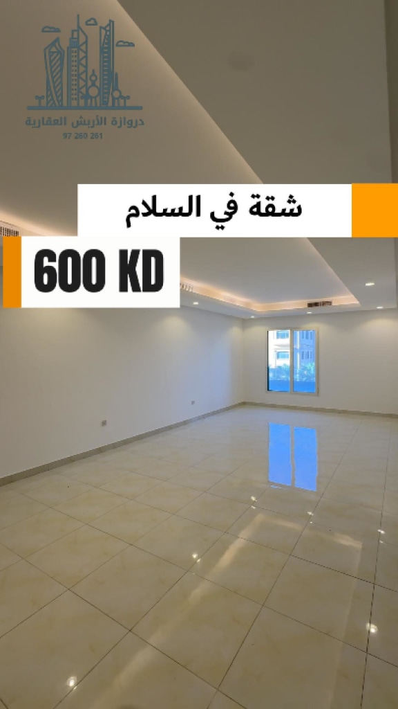 For rent in Al Salam, an excellent apartment, first floor, elevator, 3 rooms, all of them master, a large hall, an equipped kitchen, a maid’s room with its bathroom, a laundry room, two parking spaces, awnings, close to services and the mosque. Rent is 600 —- Apartments for rent in South Surra, starting from 450 —— There are apartments in Mushrif, Bayan and all areas — and there are floors and villas in all areas with different prices — and we receive offers from the owners. —-