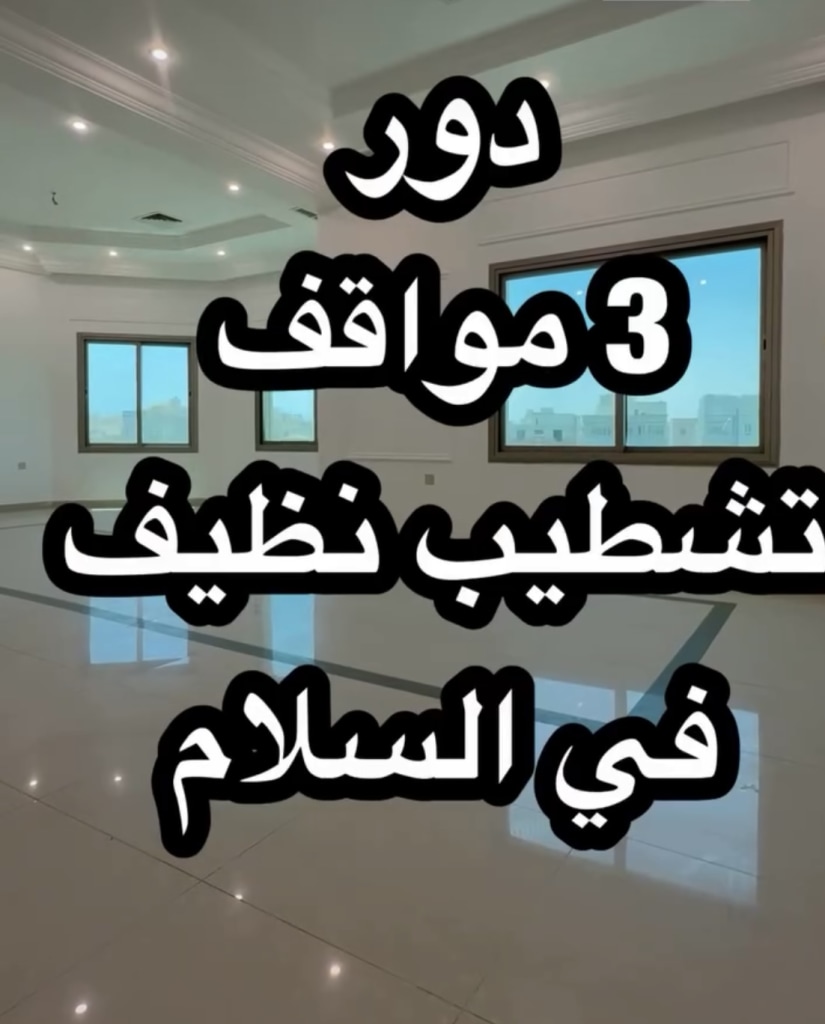 Al Salam, first floor, 3 rooms, all of them master, a large hall, an equipped kitchen, a maid’s room with a bathroom, a laundry room, curtains and bathrooms, a shower box, two umbrella stands, 600 KD