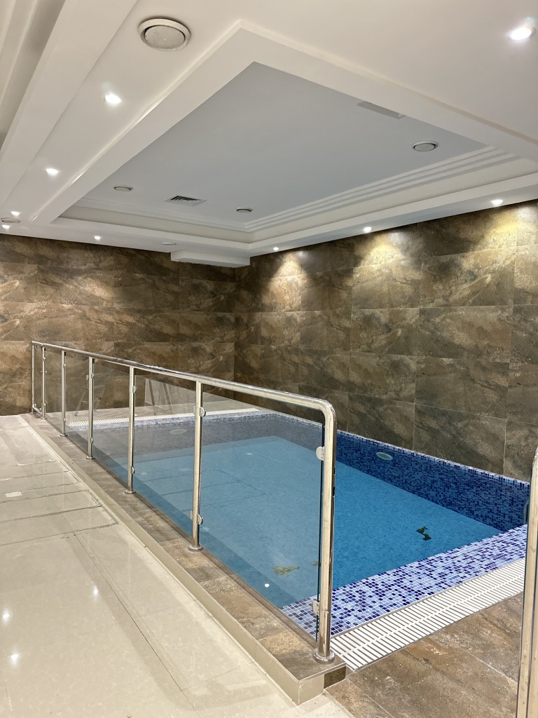 Duplex with swimming pool, private ground entrance with basement in Al-Masayel, large areas consisting of: 3 rooms, including a master room + two halls + guest bathroom + equipped kitchen + maid’s room with bathroom + laundry room + 2 parking spaces + rent 900 KD