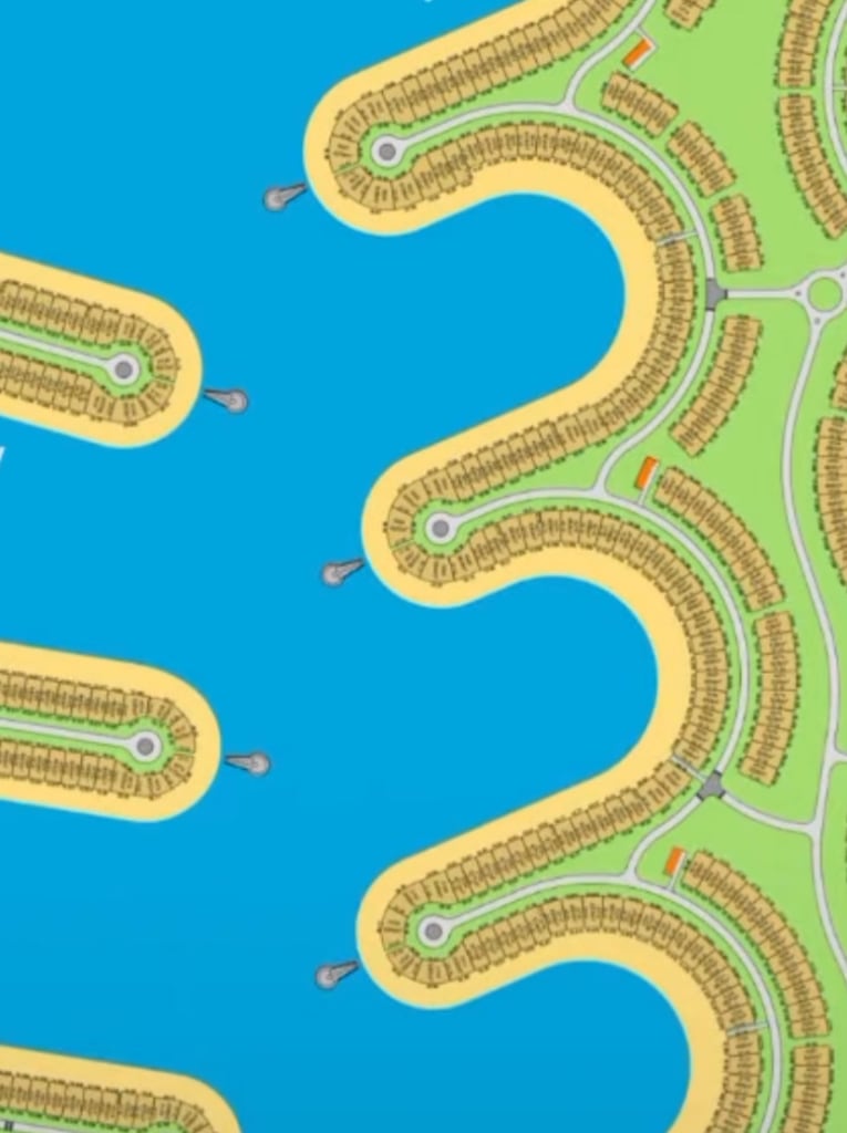 For rent, investment space land in Sabah Al-Ahmad Al-Bahria, fifth phase, directly on the creek, area of 5.7 square meters - 15 square meters frontage