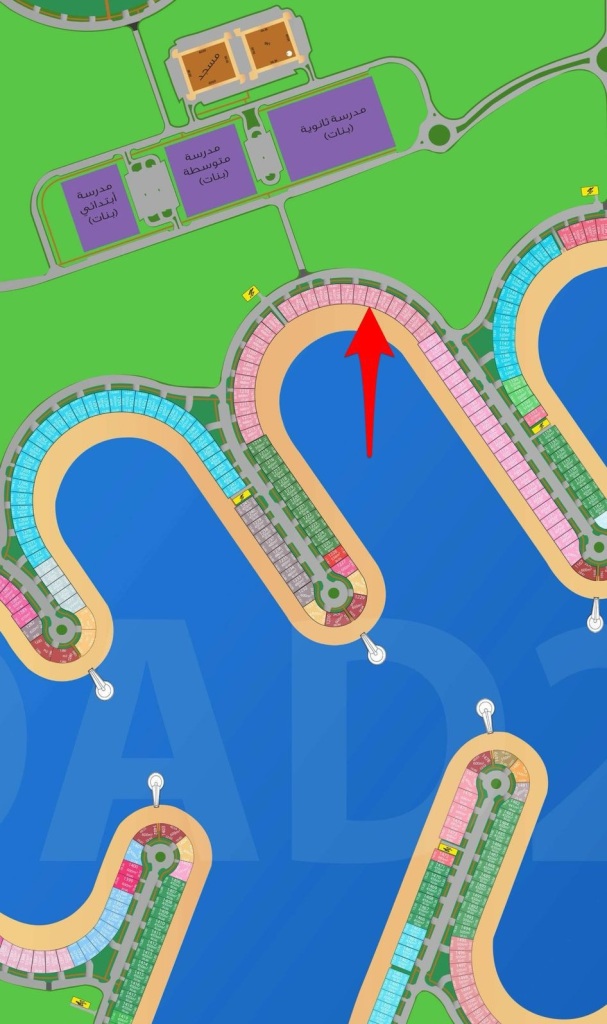 The second stage, second row, belly and back, opposite the Al-Jalbut Mosque and Marina, and close to the main Street 278. Area: 622 m. Frontage: 17 m.