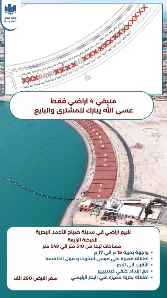 Land for sale in Sabah Al-Ahmad Al-Bahria 📌First row, fifth stage 📌Location: stomach and back 📌Area: 450 meters 💵Price 245 thousand